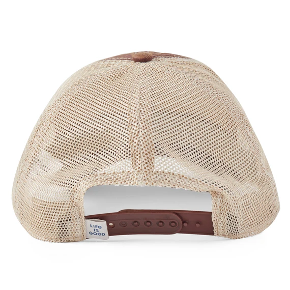 - Six panel unstructured low-mid crown with six rows of stitching on brim and soft mesh on back