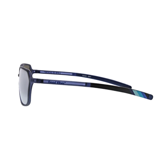 - “GOOD VIBES®” with multi-color stripes on left temple