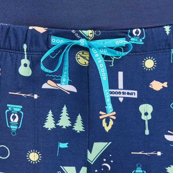 - Elastic encased waist band with Life Is Good® printed woven drawcord. Slash pockets are stitched down to stay in place.