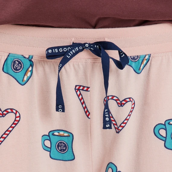 - Elastic encased rib waistband. Twill drawcord with Life Is Good® print.