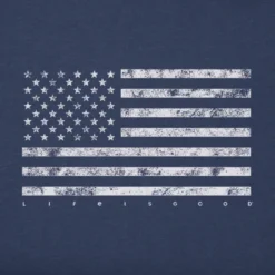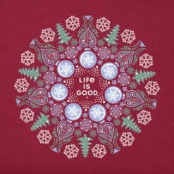 - Elastic encased rib waistband. Twill drawcord with Life Is Good® print.
