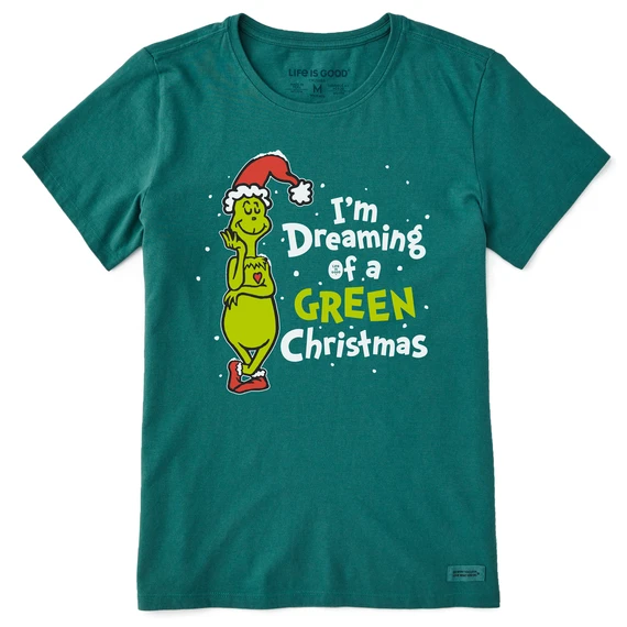 Women’s Grinch Dreaming Of A Green ChristmasCrusher Tee