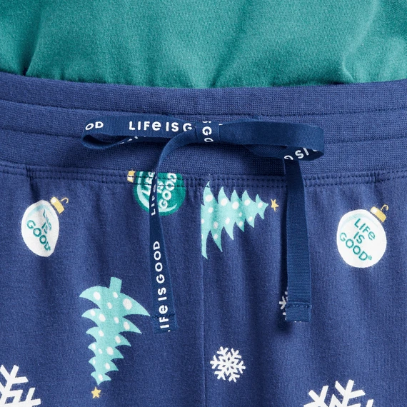 - Elastic encased rib waistband. Twill drawcord with Life Is Good® print.