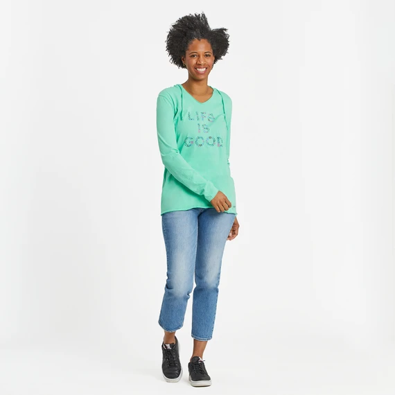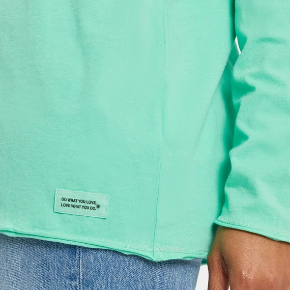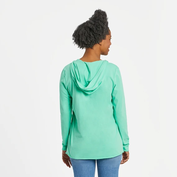 Light and so right with a playful hood. Think the softest tee you never want to take off. Plus, stand-out raw edge detail at the neck, cuffs, and hem.