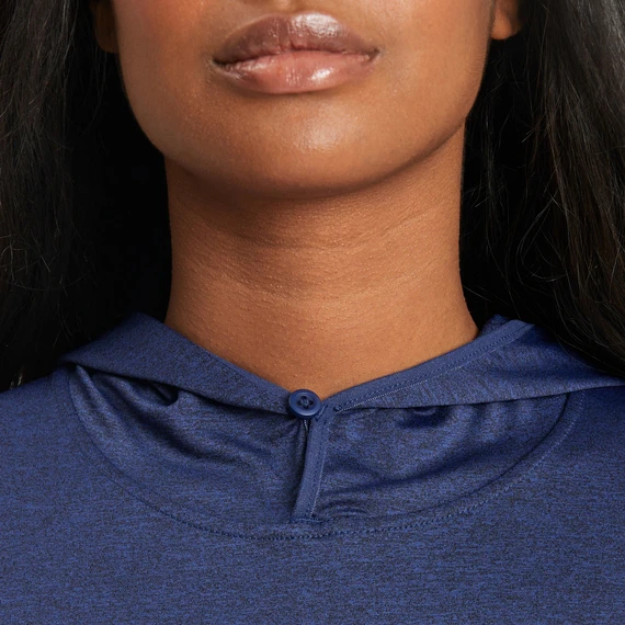 - Flatlock seams with soft sewing thread for comfort. Soft elastic binding around hood with button closure for extra sun and wind protection. Soft elastic-bound sleeve opening and thumbholes to help sleeves stay put and provide extra coverage. Inside printed back neck label for comfort, self-fabric back neck tape.