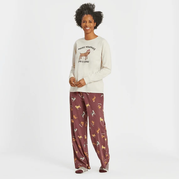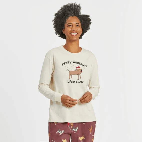 Women’s Merry Woofmas Lab Long Sleeve Snuggle Up Sleep Tee