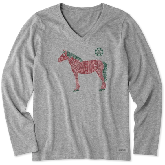 Women’s Tribal Horse Long Sleeve Crusher Vee